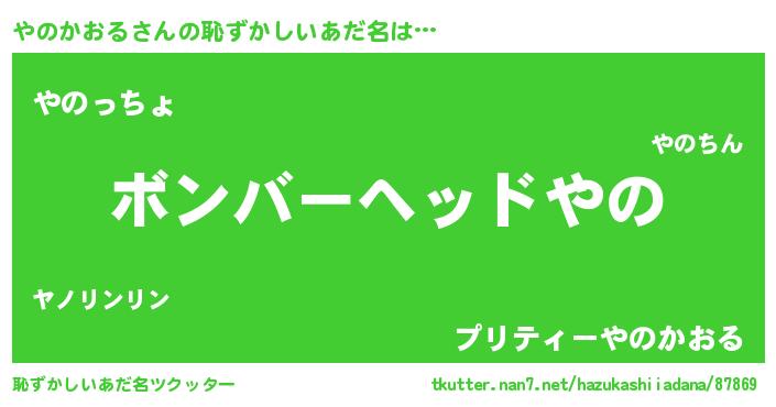 | 男性向けラノベタイトル風あだ名 | 『やのかおるに滅ぼされるだけの簡単なお仕事です』 |