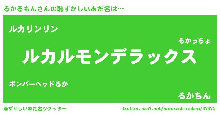 | 男性向けラノベタイトル風あだ名 | 『るかるもん~年齢イコール彼女いない歴の魔法使い~』 |