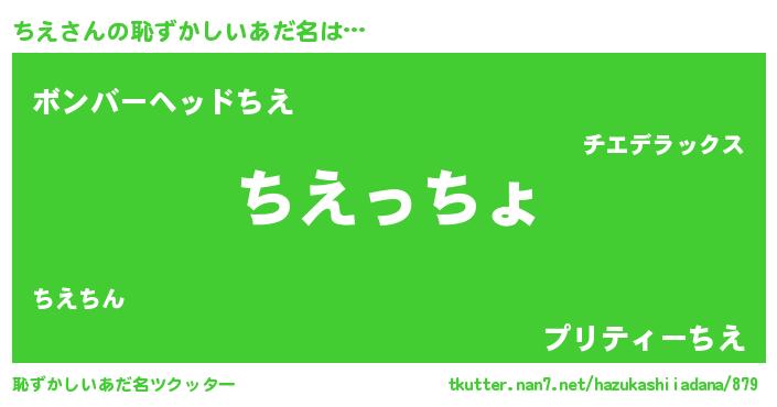 | ヘコむあだ名 | 『豆乳』『ちえっふぃ~』『ちえ(笑)』 |