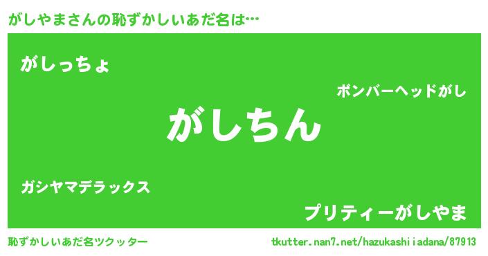 | ヒーロー風カッコイイあだ名 | 『ネオガシヤマ』『ウルトラがしやまマン』 |
