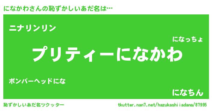 | 男性向けラノベタイトル風あだ名 | 『ニナカワアートオンライン』 |