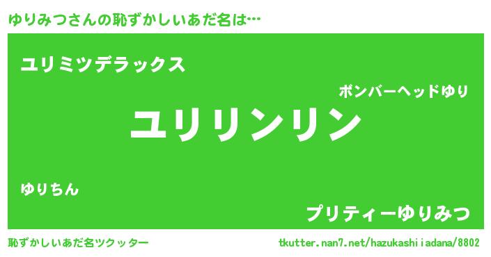 | 意味不明あだ名 | 『とにかく怪しいゆりみつ』 |
