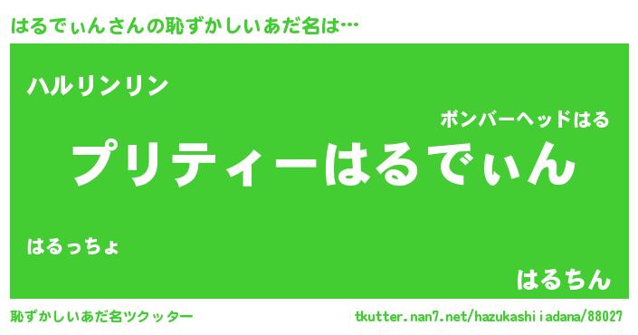 | 胡散臭い通販商品みたいなあだ名 | 『モテモテ間違いなしブレスレット…その名も「はるでぃん」』 |