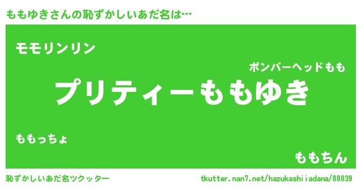 | 意味不明あだ名 | 『ペロリンももゆき』『永久保存ももゆき』 |