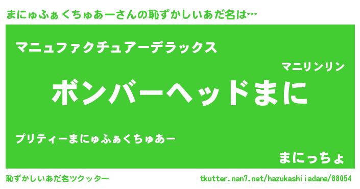 | 料理風あだ名 | 『まにゅふぁくちゅあーのトマト煮』 |
