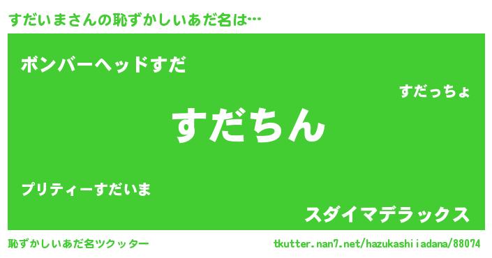 | 男性向けラノベタイトル風あだ名 | 『すだいまという概念が存在しない退屈な世界 』 |