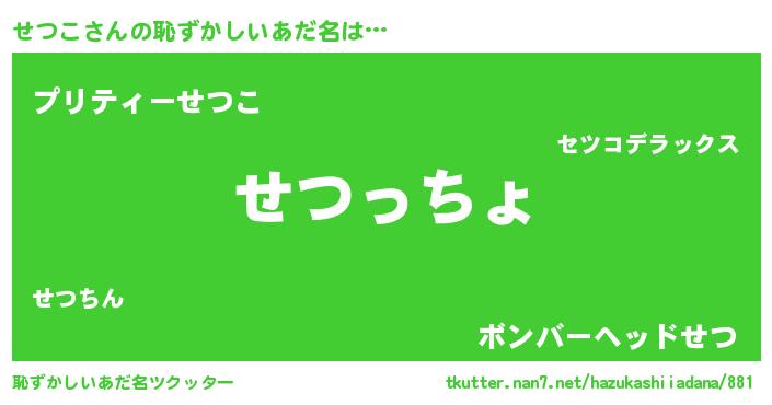 | ヒーロー風カッコイイあだ名 | 『仮面セツダー』『ウルトラせつこマン』 |