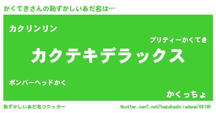 | ヒーロー風カッコイイあだ名 | 『超時空戦士カクテキ』『暗黒騎士カク』 |