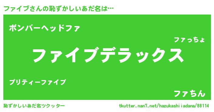 | ヒーロー風カッコイイあだ名 | 『ウルトラ戦士ファイブ』『ネオファイブ』 |