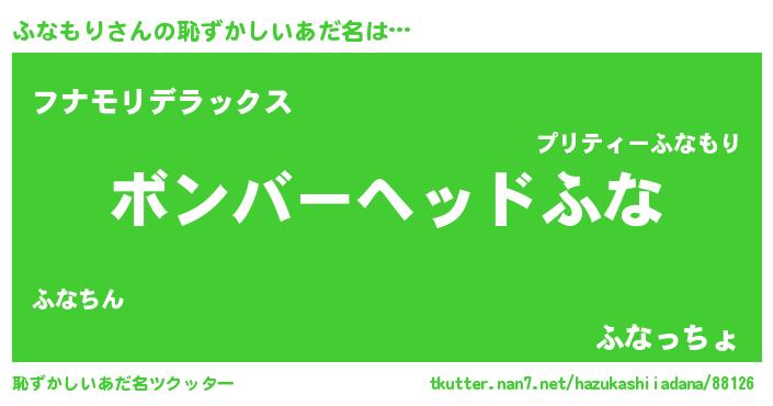 | ヘコむあだ名 | 『なまこ酢』『ふなもー』『ふなお』 |