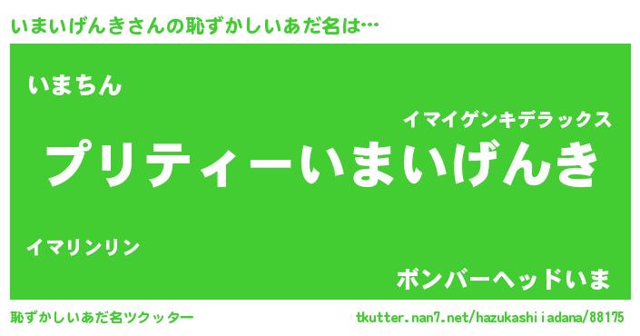 | 男性向けラノベタイトル風あだ名 | 『いまいげんきに滅ぼされるだけの簡単なお仕事です』 |