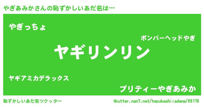 | 欧米人風あだ名 | 『ウサインやぎあみか』 |
