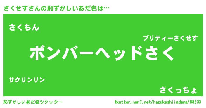 | ヒーロー風カッコイイあだ名 | 『天空の使者さくせす』『仮面サクダー』 |