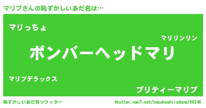 | ヒーロー風カッコイイあだ名 | 『愛の使者マリブ』『ウルトラマリブマン』 |