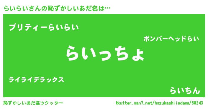 | 可愛いあだ名 | 『らいちー』『らんらん』『ぽよらい』 |