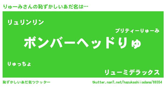 | ヘコむあだ名 | 『りゅぷりん』『りゅもー』 |