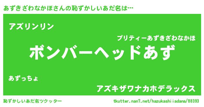 | 男性向けラノベタイトル風あだ名 | 『あずきざわなかほに滅ぼされるだけの簡単なお仕事です』 |