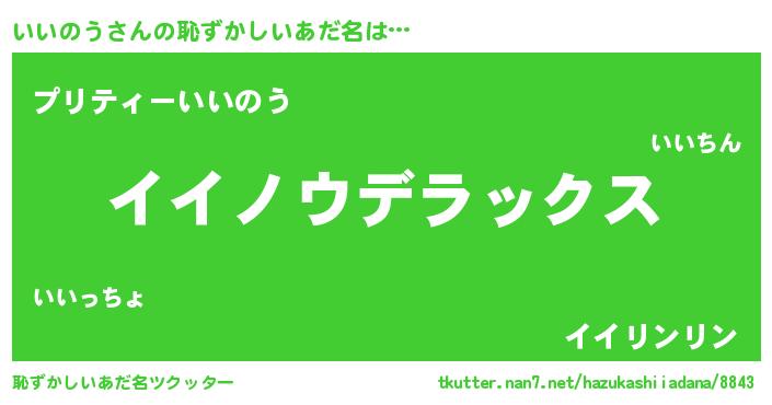 | 男性向けラノベタイトル風あだ名 | 『Re:いいのうから始める異世界生活』 |