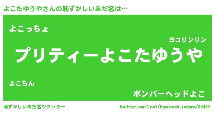 | 女子向けラノベタイトル風あだ名 | 『(仮)よこたゆうやのやんごとなき事情』 |