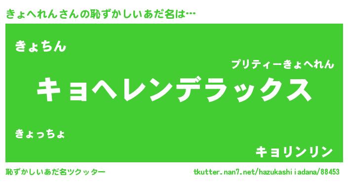 | ヘコむあだ名 | 『きょへれん(震え声)』『きょお』 |