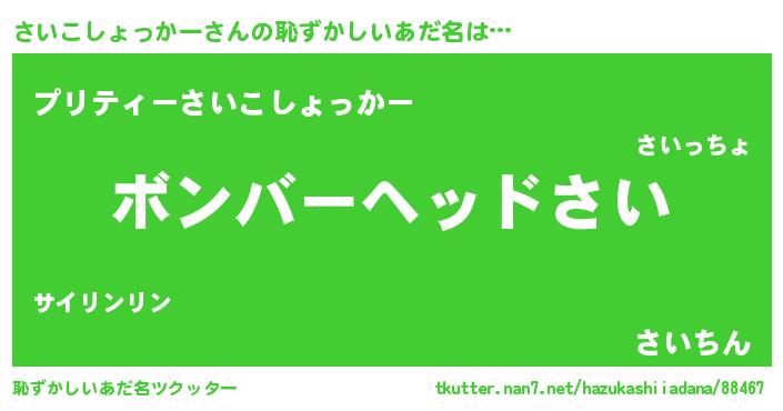 | ヒーロー風カッコイイあだ名 | 『慈愛の使者さいこしょっかー』 |