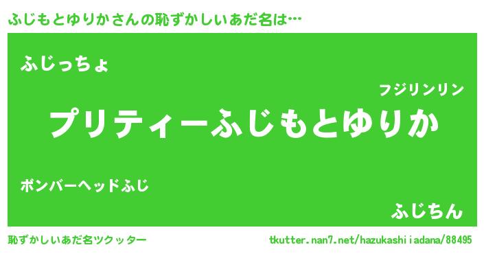 | 胡散臭い通販商品みたいなあだ名 | 『億万長者になれるブレスレット…その名も「ふじもとゆりか」』 |