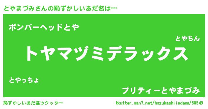 | 可愛いあだ名 | 『とやうちぇる』『とやぷりん』 |