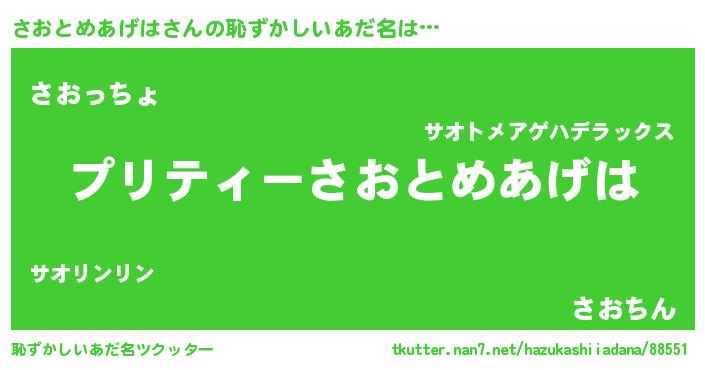 | 男性向けラノベタイトル風あだ名 | 『この素晴らしい世界にさおとめあげはを!』 |