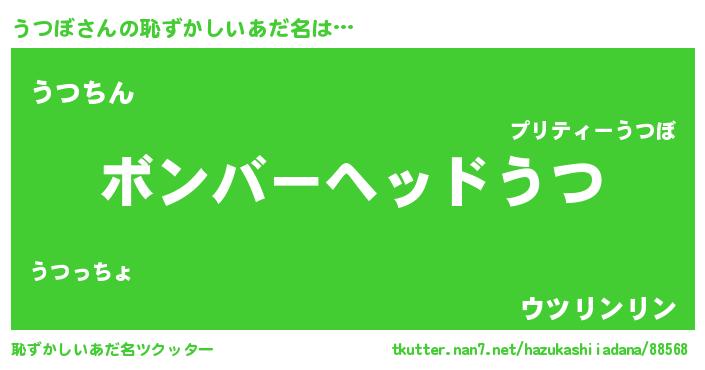 | ヘコむあだ名 | 『うつぼ(笑)』『うつを』『なまこ酢』 |