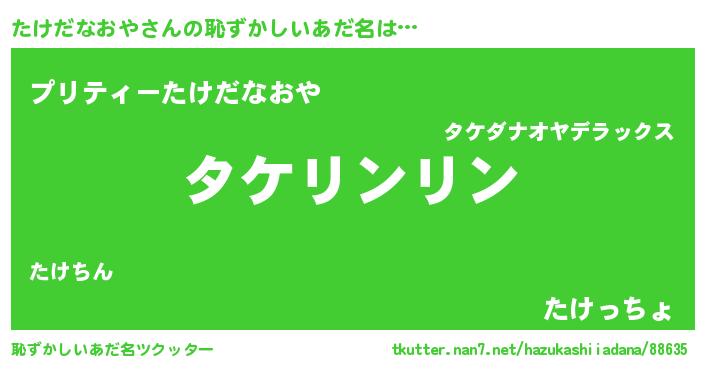 | ポケモン風あだ名 | 『ヒタケダナオヤ』『タケチュウ』 |