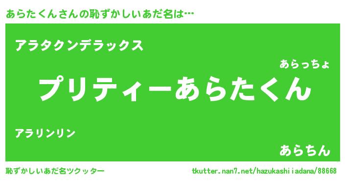 | 男性向けラノベタイトル風あだ名 | 『緋弾のアラタクン』『あらたくんの憂鬱』 |