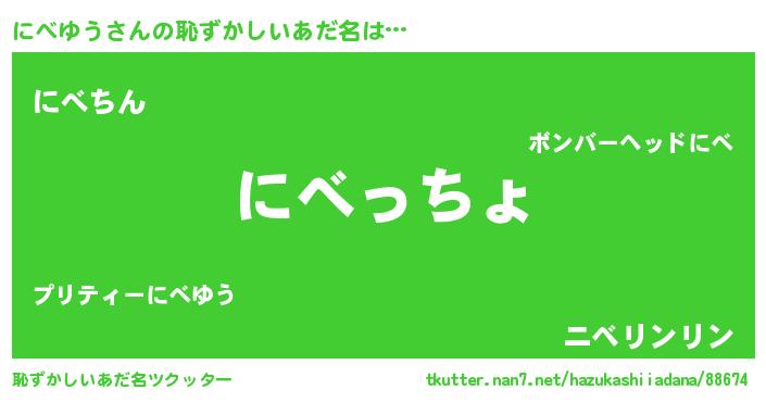 | ヒーロー風カッコイイあだ名 | 『ウルトラにべゆうマン』『ネオニベユウ』 |