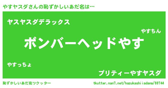 | 男性向けラノベタイトル風あだ名 | 『ヤスヤスダスレイヤー』 |