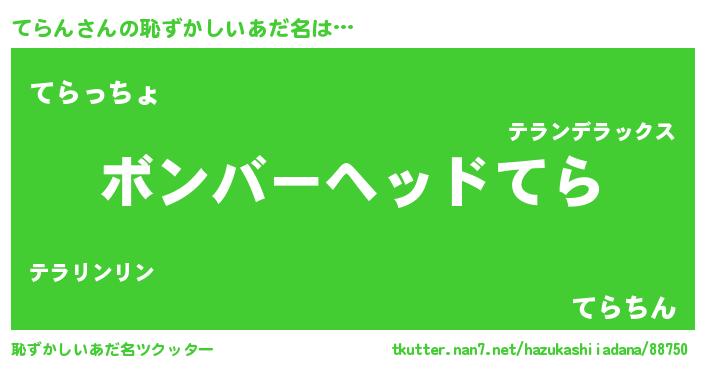 | ヒーロー風カッコイイあだ名 | 『慈愛の使者てらん』『ネオテラン』 |
