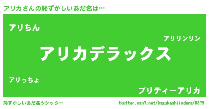 | 意味不明あだ名 | 『自称アリカ』『永久保存アリカ』 |