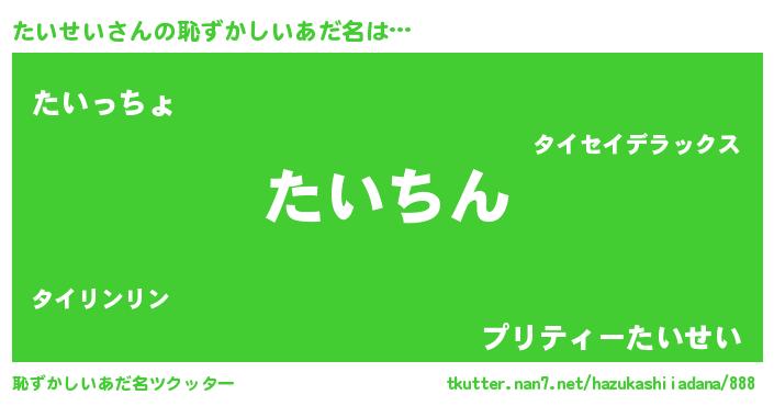 | ヒーロー風カッコイイあだ名 | 『ネオタイセイ』『ウルトラたいせいマン』 |
