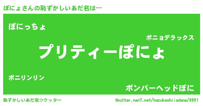 | ヒーロー風カッコイイあだ名 | 『スーパーポニョ』『ウルトラぽにょマン』 |