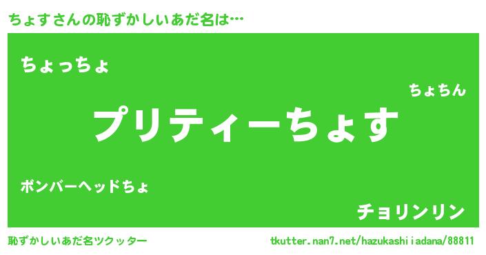 | ヒーロー風カッコイイあだ名 | 『スーパーチョス』『ウルトラちょすマン』 |