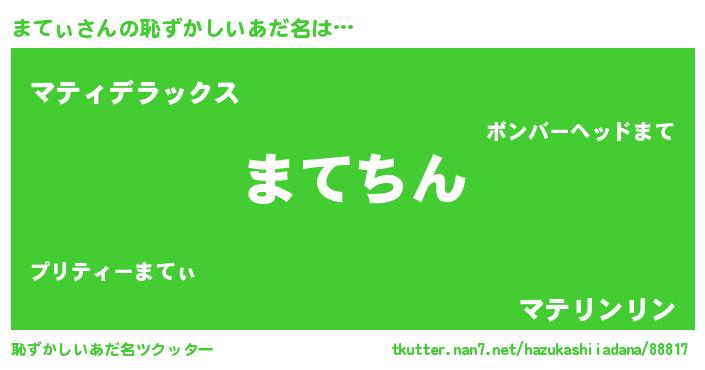 | 意味不明あだ名 | 『永久保存まてぃ』『自称まてぃ』 |