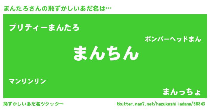 | 意味不明あだ名 | 『永久保存まんたろ』『ペロリンまんたろ』 |