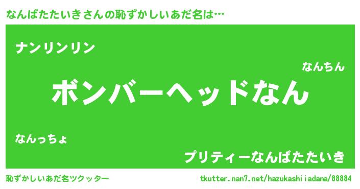 | 男性向けラノベタイトル風あだ名 | 『ナンバタタイキスレイヤー』 |
