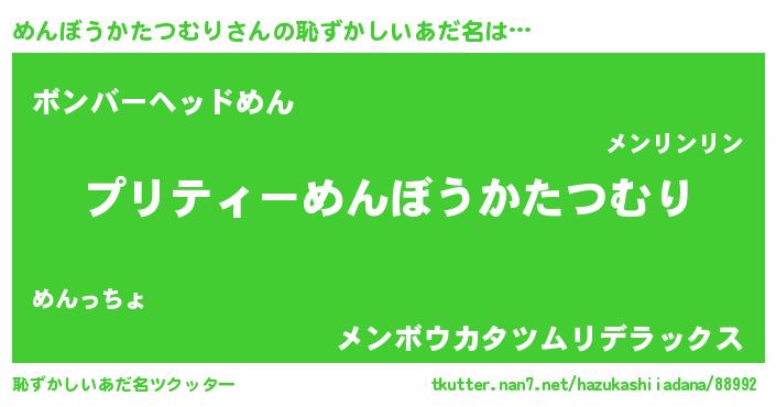 | ヘコむあだ名 | 『めんっふぃ~』『めんぷりん』 |