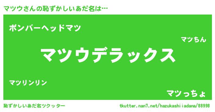 | 男性向けラノベタイトル風あだ名 | 『Re:マツウから始める異世界生活』 |