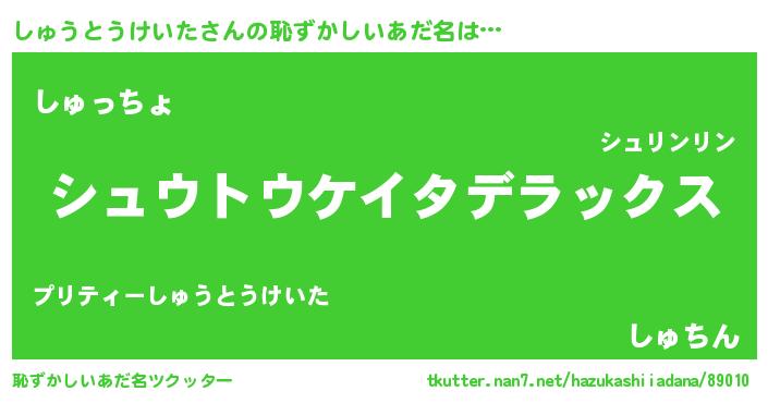 | 意味不明あだ名 | 『自称しゅうとうけいた』 |