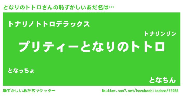 | ヘコむあだ名 | 『となもー』『となりのトトロ(小並感)』 |