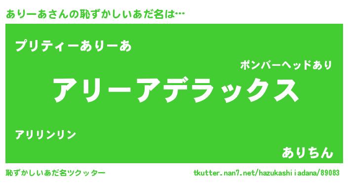 | ヘコむあだ名 | 『ありっふぃ~』『ありーあ(小並感)』 |