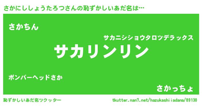 | ヘコむあだ名 | 『さかぷりん』『さかにししょうたろつ(笑)』 |