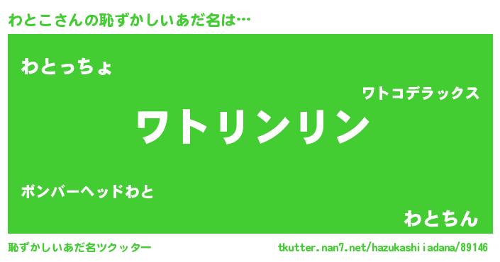 | 胡散臭い通販商品みたいなあだ名 | 『信頼と実績のサプリメント…その名も「わとこ」』 |