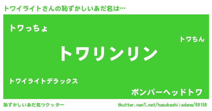 | ポケモン風あだ名 | 『トワゴンZ』『ヒトワイライト』 |