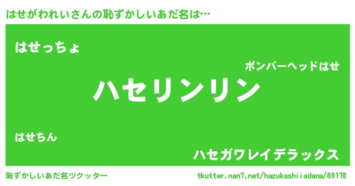 | 意味不明あだ名 | 『住所不定無職はせがわれい(79歳)』 |